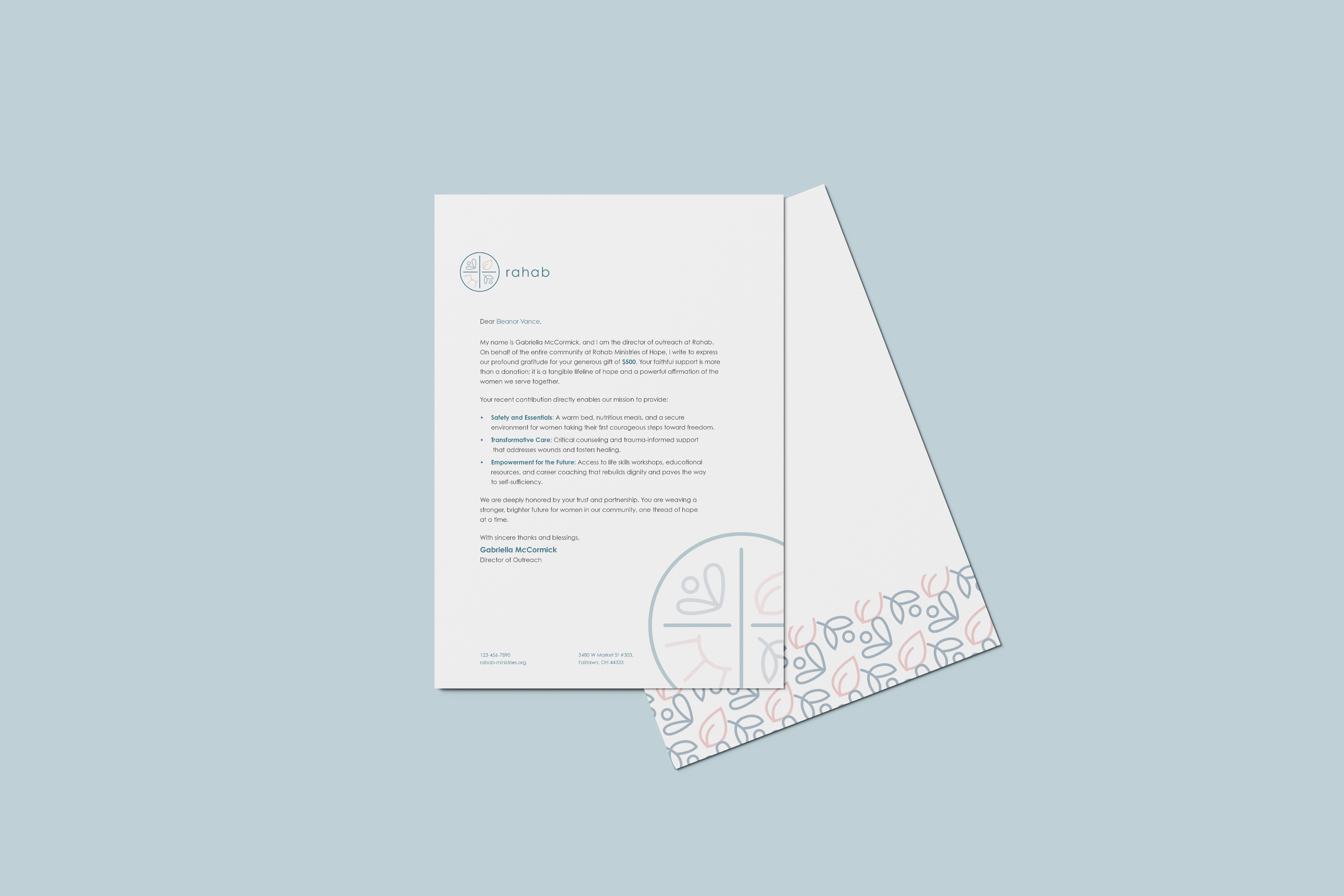 A warm and peaceful visual identity for Rahab — a sex-trafficking shelter.