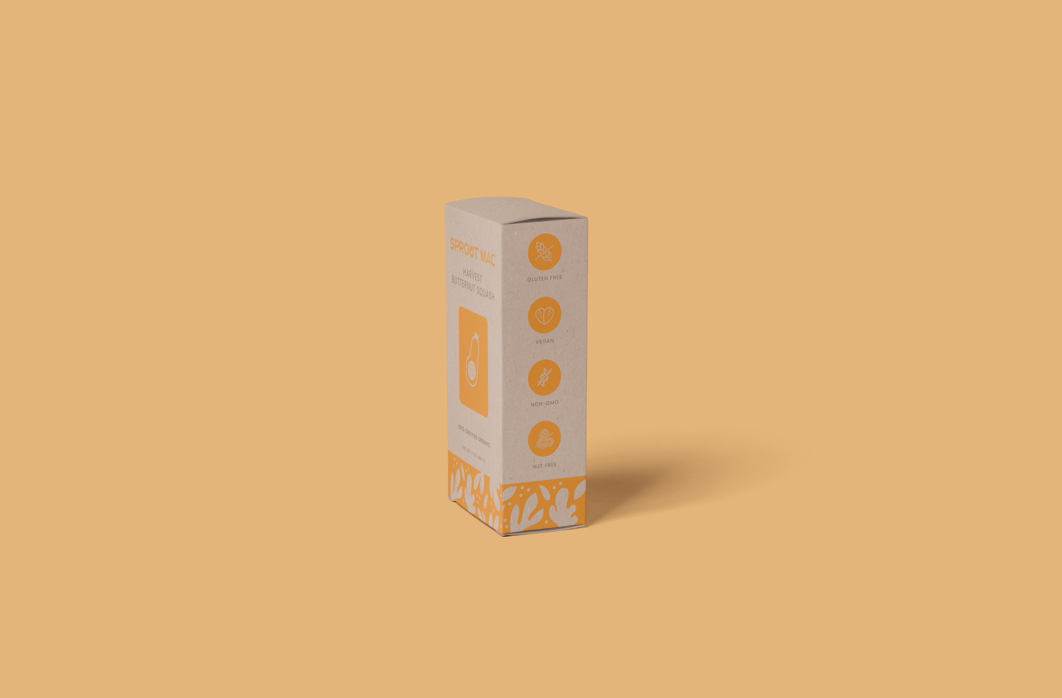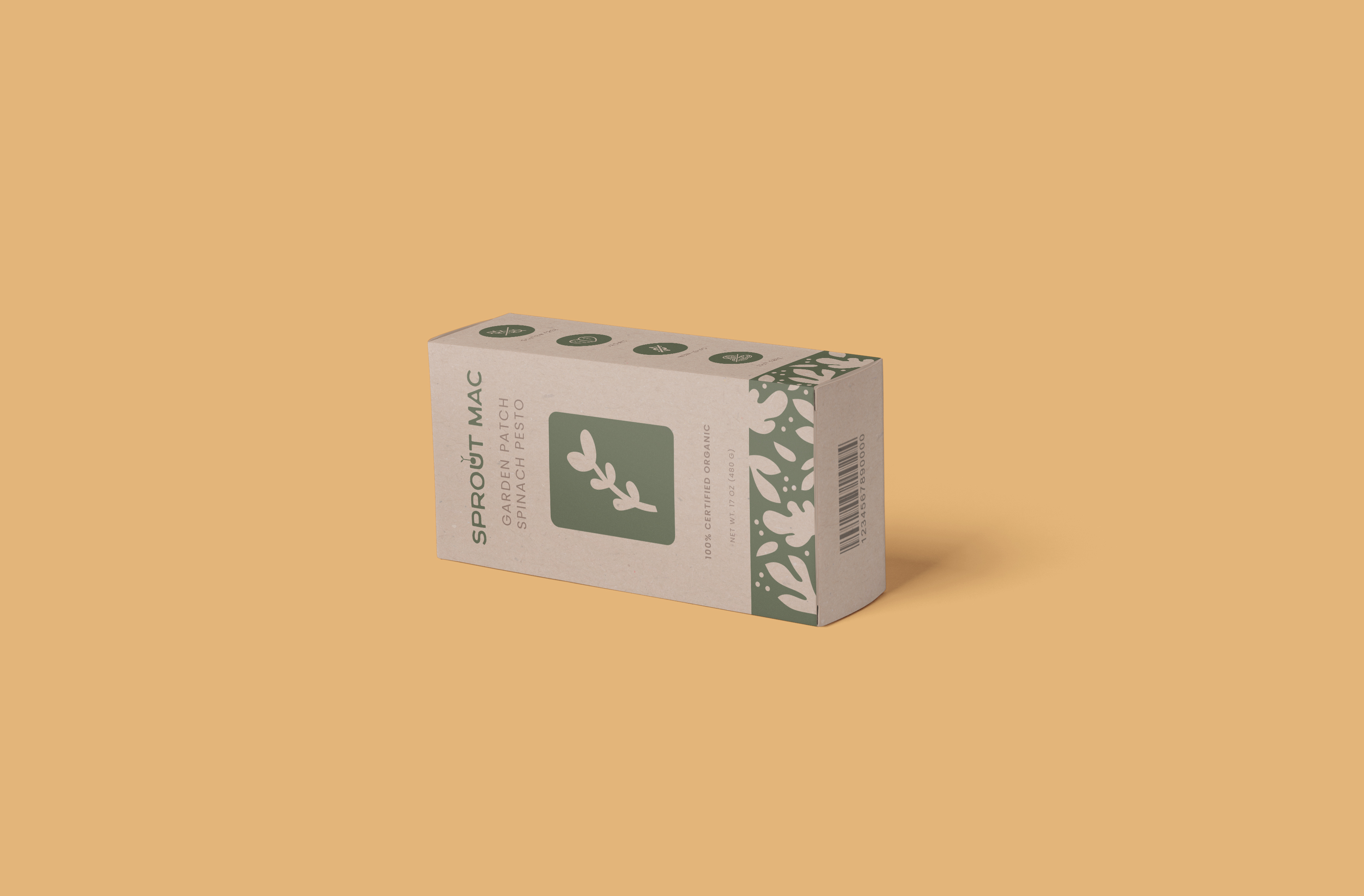 Playful, garden-inspired packaging design for Sprout Mac, a plant-based mac and cheese brand.